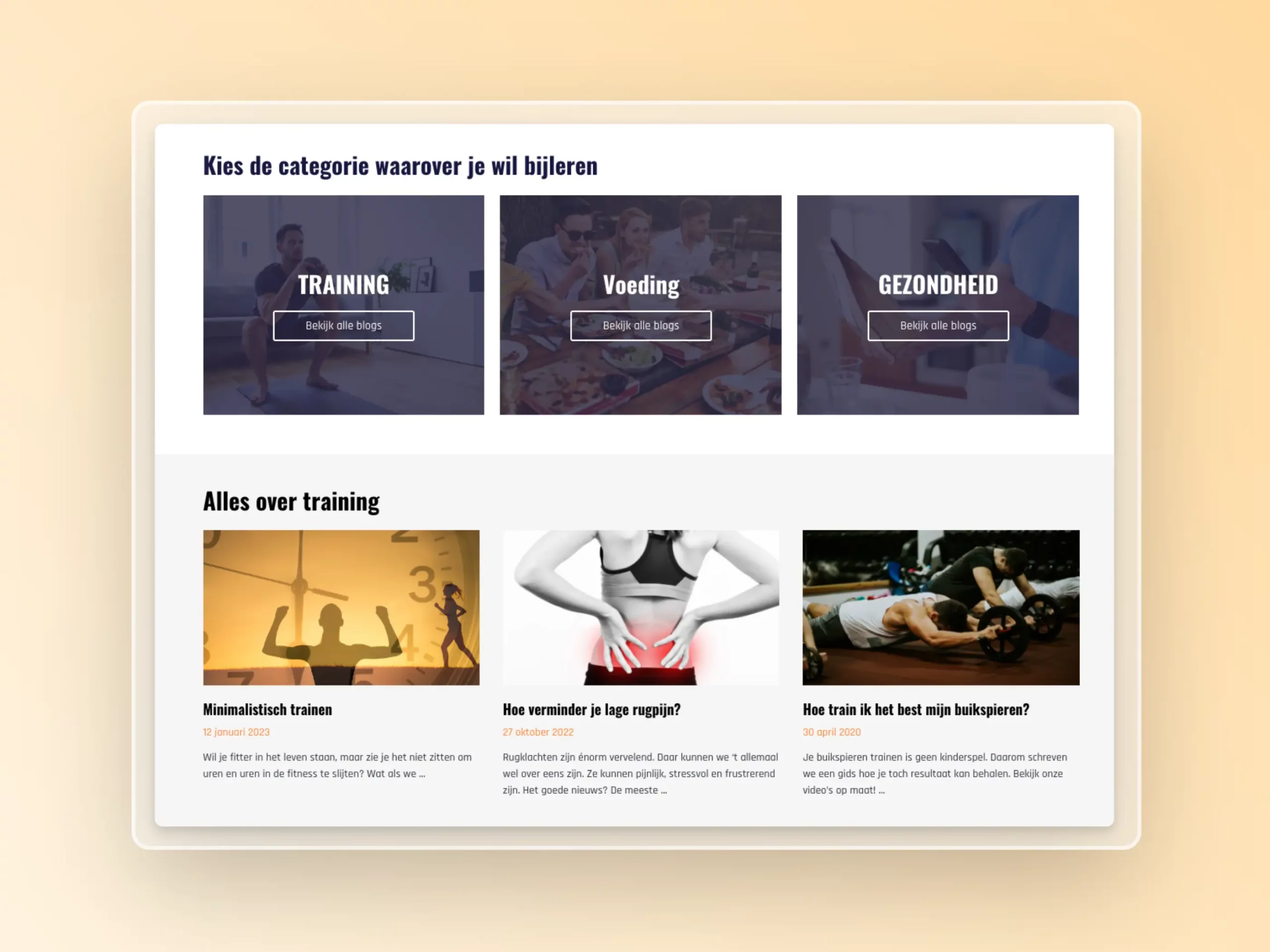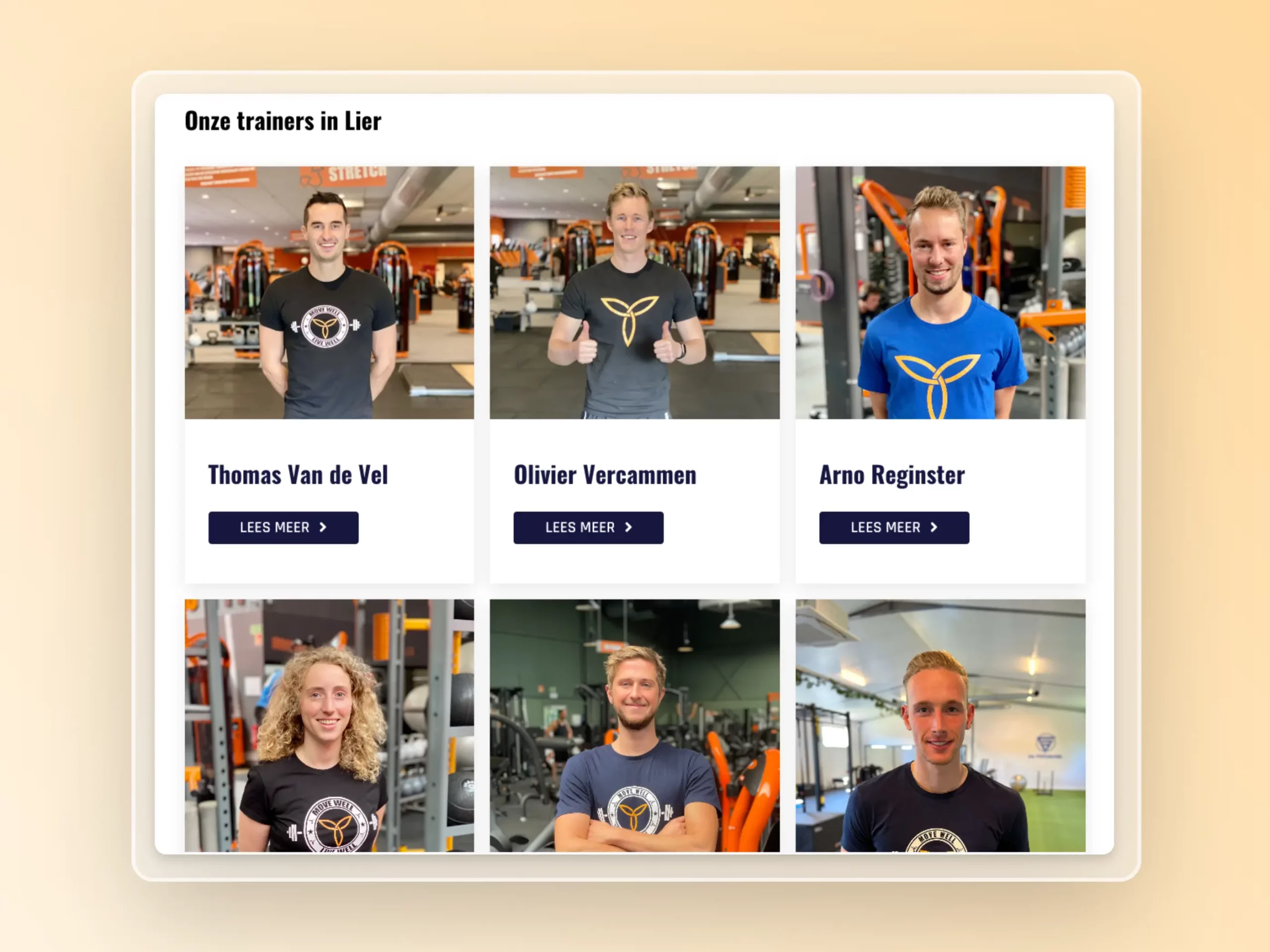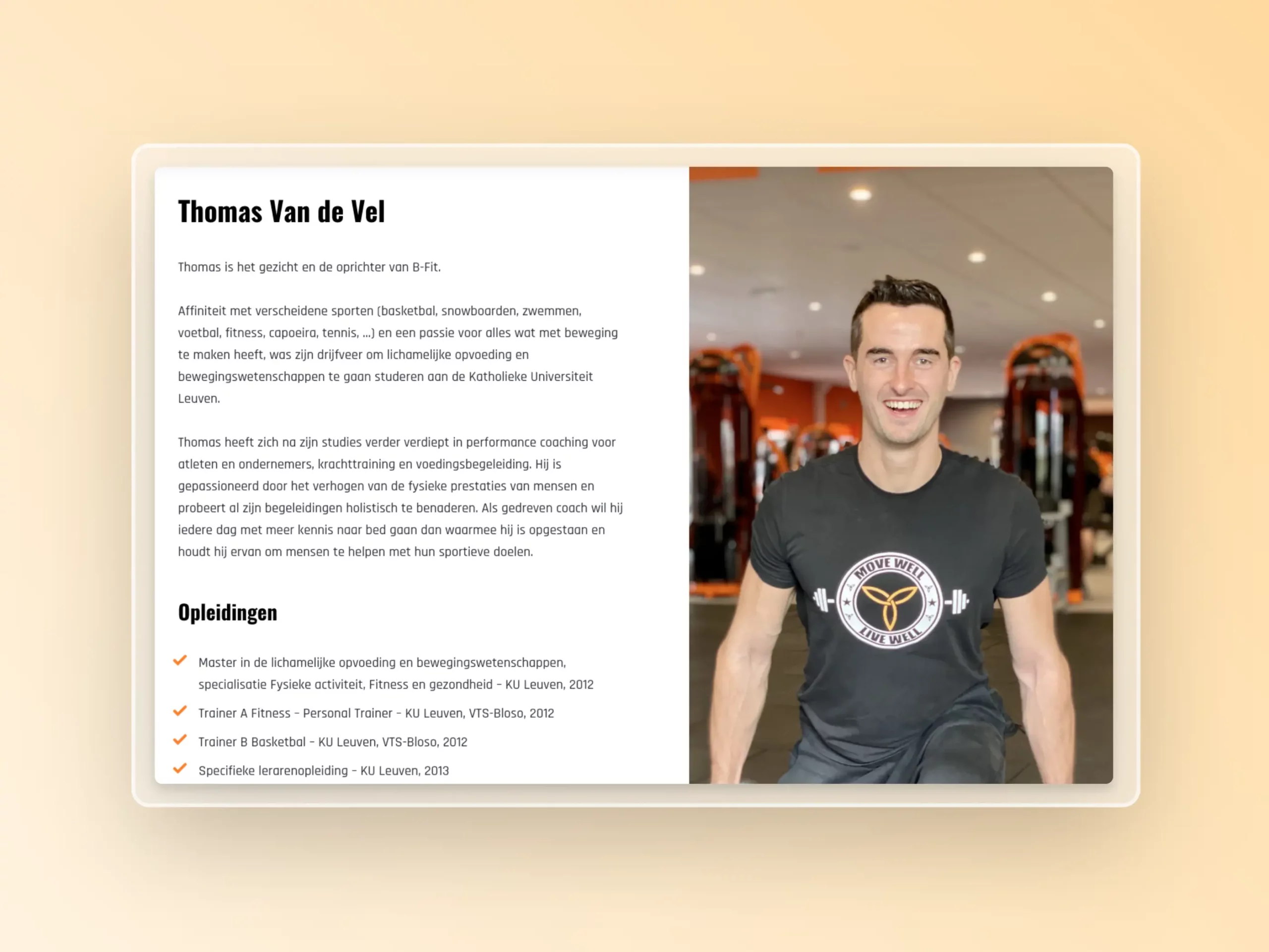 Maak alvast kennis met je coach op de website! Op de teampagina van B-Fit krijg je een duidelijk overzicht van alle trainers, elk met hun eigen introductie, foto, opleidingen en expertises. Zo krijg je een goed beeld van wie je kan begeleiden op je pad naar een fitter en gezonder leven.