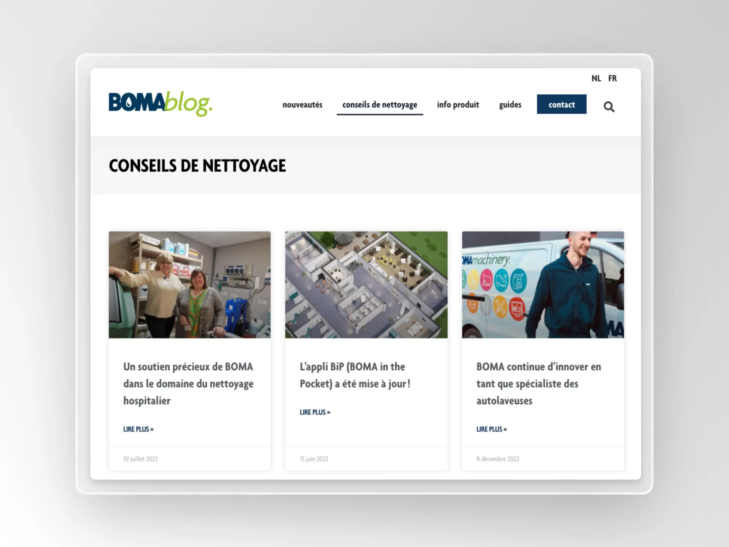 BOMAblog levert waardevolle en praktische content in zowel het Nederlands als het Frans. Met een eenvoudig te navigeren interface kunnen bezoekers gemakkelijk schakelen tussen beide talen, waardoor een breed aanbod aan informatieve artikelen over schoonmaken en hygiëne toegankelijk wordt voor een divers publiek.