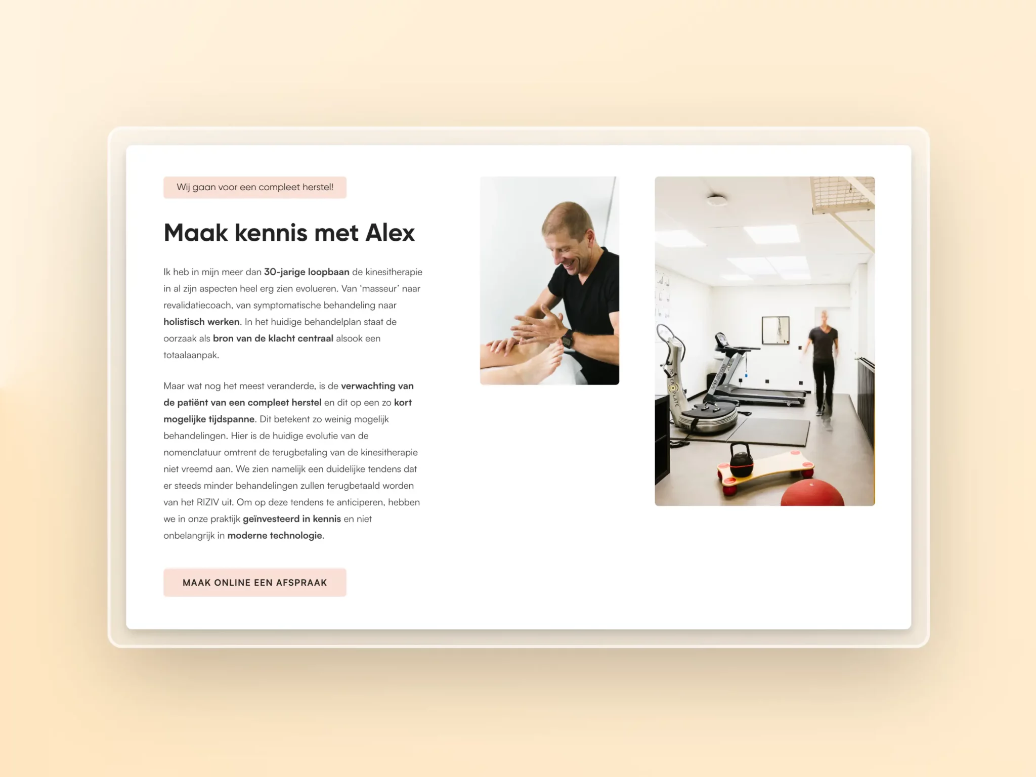Alex, de man van Greet, biedt kinesitherapie aan bij Corporella. Via de site kun je snel & makkelijk een afspraak maken. Verder geven we hier een heleboel uitleg over alle behandelingen.