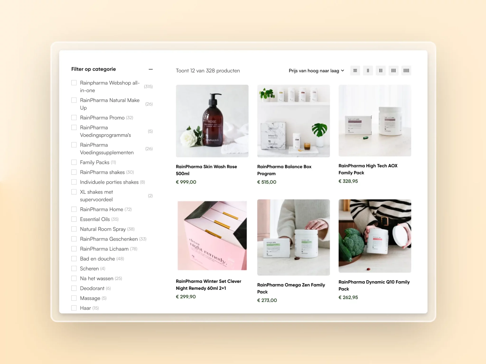 Omdat Corporella veel producten aanbiedt, is het belangrijk dat er een handige filter is. Deze zit niet verborgen, maar opent meteen aan de zijkant. Verder is er ook een uitgebreide zoekfunctie zodat klanten meteen het juiste product vinden.